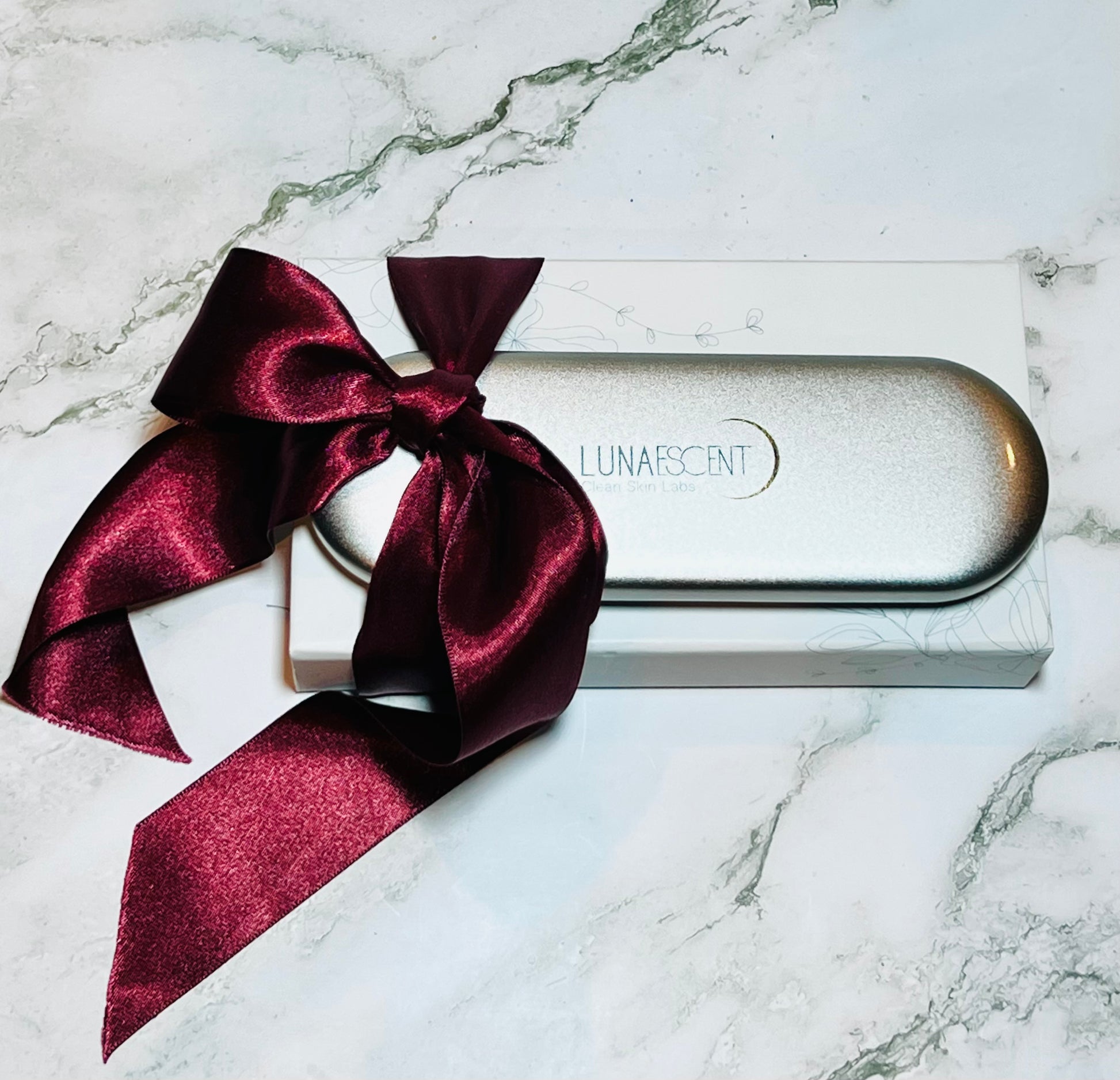 - The LUNAESCENT Deluxe Gift Set. The set is presented in a luxury keepsake box and includes one LUNAESCENT touch-free applicator and 2 Platinum-grade silicone pads: (i) Smooth pad for hygienic and effective application of any type of skincare, and (ii) Textured pad for massaging, depuffing, exfoliating, and washing. The set also includes a gold LUNAESCENT low-scoop spatula for hygienic retrieval of skincare products sold in jars or smaller containers.
